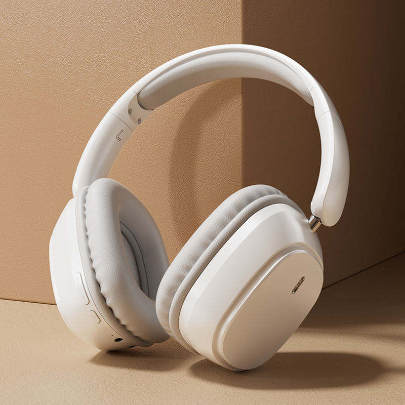 White & Beige Wireless Headphones Lightweight Over Ear